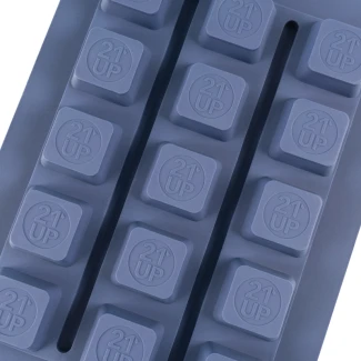 Die 21UP-Silikonformen sind perfekt für Hartkaramellen, aromatisierte Gummibonbons, Kautabletten, Schokolade und sogar Leckerlis für Haustiere! Jede runde Form ist mit dem Magical '21UP'-Logo...