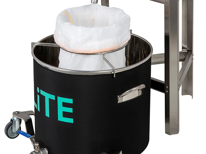 Inoltre, l'MX ICE 200 LiTE include una camera di sicurezza in acciaio inossidabile posizionata strategicamente sul fondo del serbatoio di estrazione. Questo complemento è progettato per conservare e proteggere i preziosi tricomi durante il processo di agitazione, impedendone la dispersione e garantendo l'integrità dell'estrazione.