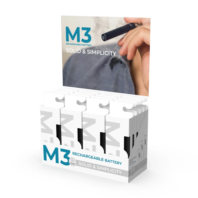 Das stiftförmige Design macht den M3-Akku praktisch für den Transport. Sein Gehäuse ist aus Edelstahl und das Aufladen erfolgt über den mitgelieferten 510/USB-Anschluss. Die Aktivierung des Widerstands durch Inhalation, die selbstanpassende optimale Temperatureinstellung und das knopflose Design machen den M3 perfekt für jede Patrone und einfach zu bedienen.
