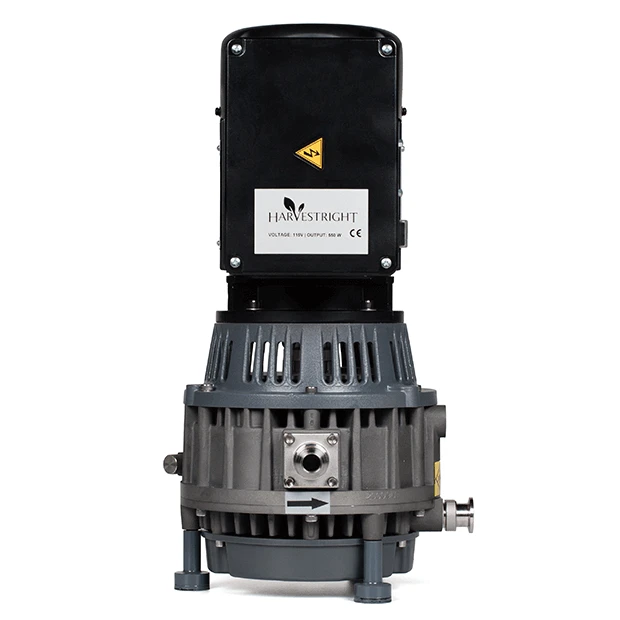 2. Una vez congelados, el liofilizador crea un vacío alrededor del producto y el hielo se convierte en vapor y se evapora (bomba de vacío incluida).