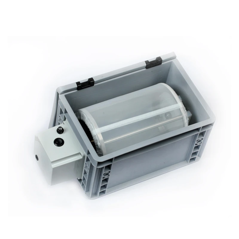 La velocidad del tambor se puede ajustar de aproximadamente 8 a 35 rpm (en 7 pasos) y el sentido de giro se puede cambiar cambiando la polaridad de la clavija. El tamaño de malla estándar de 150μm se utiliza para separar el polen del material vegetal.