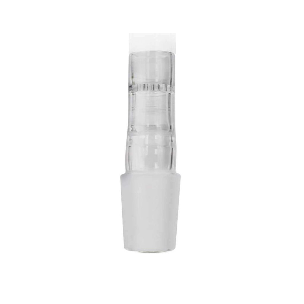 Ein Adapter aus Borosilikatglas für Arizer Solo und Air Verdampfer ermöglicht den Anschluss des Verdampfers an jede Wasserpfeife mit einer 18mm Buchse.