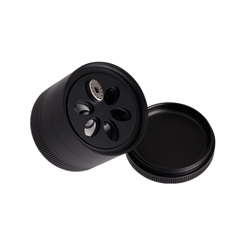 Der aus hochwertigem Aluminium gefertigte Grinder zerkleinert Kräuter zu einer mittleren Konsistenz, die sich perfekt für den Konsum nach Belieben eignet. 0,2 Gramm fasst der Grinder, der durch einfaches Entfernen des Kapselrings auch als normaler Grinder verwendet werden kann .