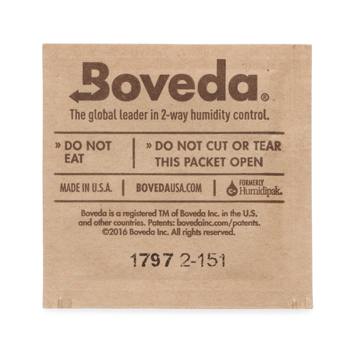 The patented Boveda packs inside the container keep the relative humidity stable and if necessary add or absorb moisture in order to keep the contents constant at 62% (+/- 1%).