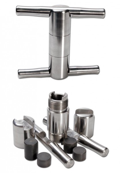 Double crank press with three-stage magnetic coupling. useful for compacting and pressing your dry sift extractions.