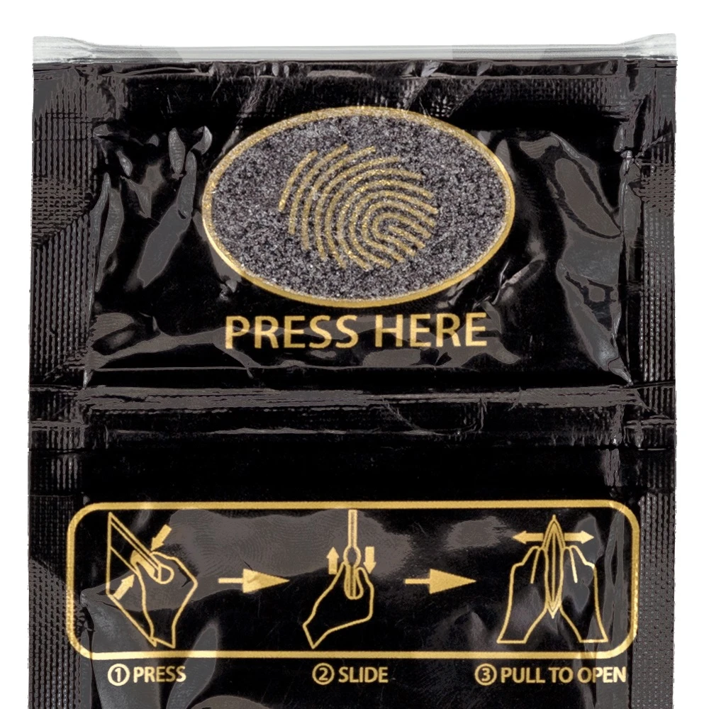 Features odour-proof press-to-open bag: