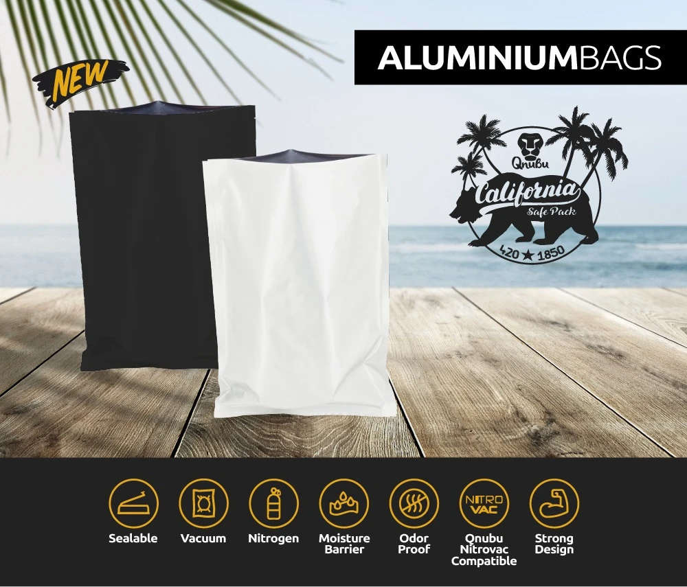 Features black aluminium heat-sealable Qnubu bag: